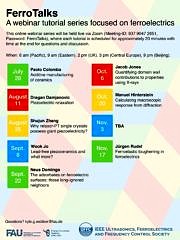 In order to stay connected within the ferroelectrics community during these extraordinary times, Prof. Kyle Webber, as the Tutorials and Education Chair of the Ferroelectrics Standing Committe of the IEEE UFFC and the director of the GRK 2495, has organised a bi-monthly webinar series on various topics related to the processing, characterization, structure, or modeling of ferroelectrics. Every two weeks a short tutorial (approximately 15 minutes) will be held live via Zoom by various leading experts from around the world, followed by an open discussion and question/answer session.