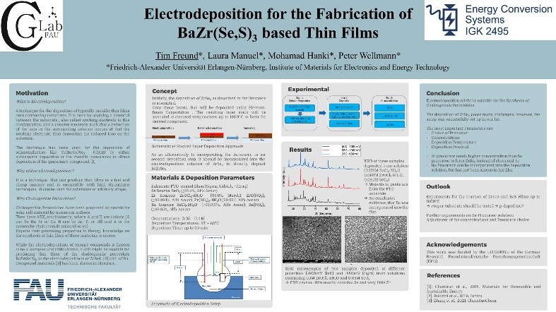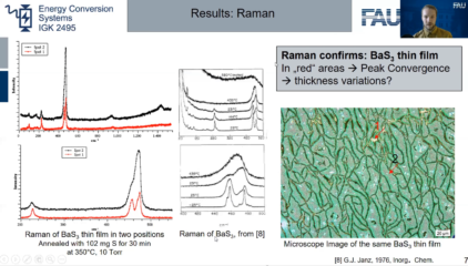 Tim Freund (PhD student in Project I) was granted the opportunity to present the status and progresses of two projects revolving around the synthesis of chalcogenide perovskite thin films as part of