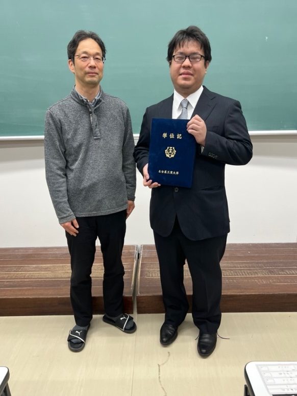 We congratulate Dr. Yuta Yamamoto from Project H for successfully defending his doctoral dissertation titled “Local structure analyses of perovskite materials using atomic resolution holography” on 26th March 2022. He has worked on the development of atomic resolution holography and its applications to ferroelectric perovskite materials under the supervision of Prof. Koichi Hayashi, Nagoya Institute of Technology. He successfully determined the local arrangement of anions in a ferroelectric oxynitride thin film. In addition, he estimated the local structures around dopants in barium titanate based perovskites and obtained clues to develop new lead-free ferroelectrics. This achievement was reached by the great supports by Prof. Kyle Webber and Prof. Ken-ichi Kakimoto. He completed the dissertation with a remarkable defense and received the best possible grades. Yuta’s PhD work will be published online via NITech’s PhD database.