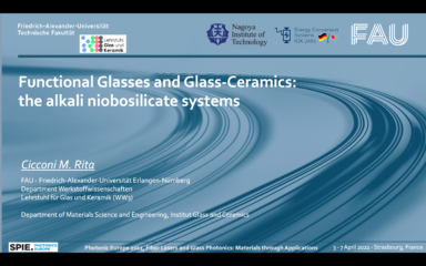 The invited talk by Dr. Cicconi from April 4, 2022 regarded the investigation of REE-bearing functional materials based on alkali niobates. Indeed, Project G’s goal is to develop novel glass-ceramics containing lead-free perovskite. Glass-ceramic materials offer the opportunity to combine the advantages of glass production and the optical properties of a chemically stable matrix with the functional properties of piezoelectric/ferroelectric crystals dispersed in it.