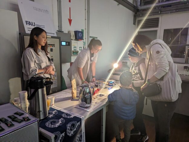 On October 21, 2023 it took place for the 11th time with 27.000 visitors. From 5 to 12 pm FAU was open for the curious and interested public. The department for Material Sciences presented “Sweet Experiments with Materials”. Under that theme, our International Research Training Group „Energy Conversion Systems“ also presented its research topics and made them accessible to the visitors.