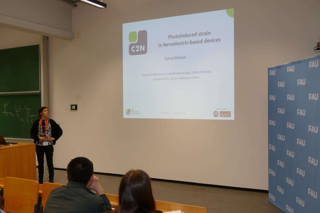 On the first day of the school, the focus was on the fundamentals of multimodal energy conversion materials. Following the plenary lecture on post-lithium battery technologies by Dr. Andy Fiedler (Moll Batterien, Germany), Prof. Brahim Dkhil (Paris-Saclay University, France) delivered an excellent overview of photoferroelectricity, as well as a broader perspective on the many multimodal energy conversion mechanisms currently under investigation. Dr. Sylvia Matzen, from the Centre de Nanosciences et de Nanotechnologies at Paris-Sud University in Orsay, introduced the concept of photo-induced strain. She presented examples involving epitaxial oxide thin films and their integration into electronic devices, with a particular focus on light–matter interactions in ferroelectric materials. The final talk of the day was given by one of the IGK 2495 principal investigators, Prof. Wolfgang Heiß, who discussed halide perovskites and the challenges posed by interfaces and intrinsic defects, and how they can lead to non-radiative recombination losses in photovoltaic cells.